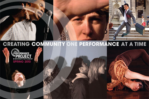 News » Performance Project Spring 2010 Season is in full swing!![]() The Performance Project's Spring 2010 Season is in full-swing with an exciting group of performers seeking to inspire audiences to play with new perspectives, stretch frames of reference and look longer at their surroundings. This season we invite you to experience the cutting edge sounds of Joseph Webb and So Percussion. Be awed by the virtuosic moves of Bennyroyce Dance Productions and Beth Soll & Company. Get drawn into the multi-disiplinary work created by Alaine Handa's Chameleon and Wrest co-creators Jules Gimbrone (composer), Elliot Montague (filmmaker) and Jules Skloot (choreographer). Connect with some of New York's most creative thinkers through our continuing partnerships with Ontological-Hysteria Incubator, Carnegie Hall, Peridance Capezio Center and Live Arts Collaboration. Ticket prices, unless otherwise noted are $15 for adults/ and $10 for students. Tickets are $5 for all youth 18 and under. Your ticket purchases help subsidize tickets for families in-need and help make the arts accessible for all. Advance tickets for certain dance performances are available at http://www.brownpapertickets.com. Click here for more information! Location: The Performance Project @ University Settlement is located at the corner of Eldridge Street and Rivington Street. F/V to Second Avenue, B/D to Grand Street, J/M/Z to Essex Street. For more information and to make a reservation for any event, please call 212-453-4532 or e-mail project.audience@gmail.com. |
