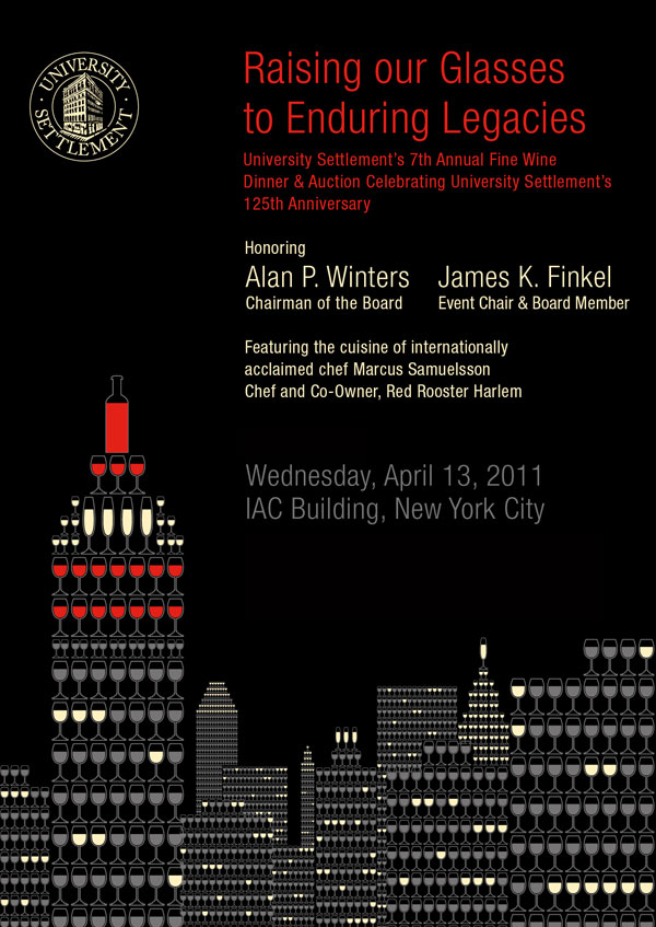 Come celebrate University Settlement's 125th Anniversary, honoring Alan P. Winters and James K. Finkel, and savor an unforgettable selection of wines expertly paird with the cuisine of award-winning Chef Marcus Samuelsson.