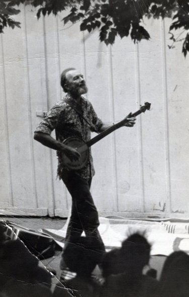 Camp regular Pete Seeger in the early 1970s leading the familiar yearly sing-along at camp.